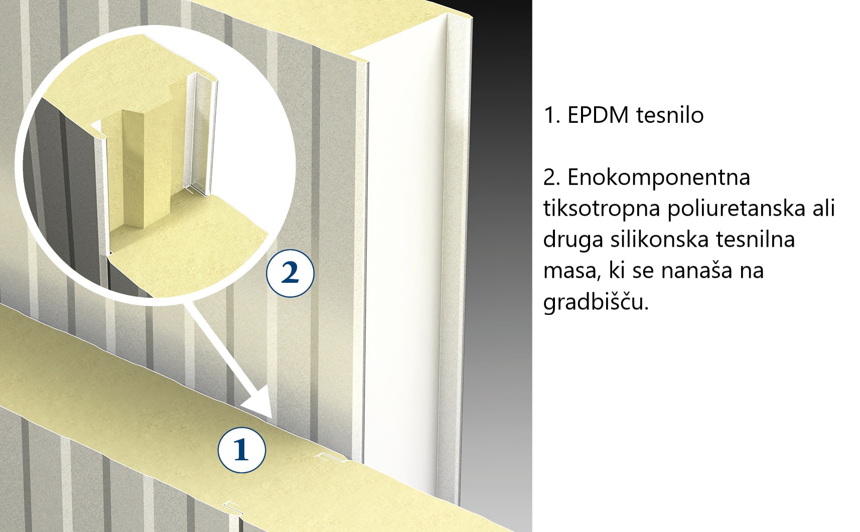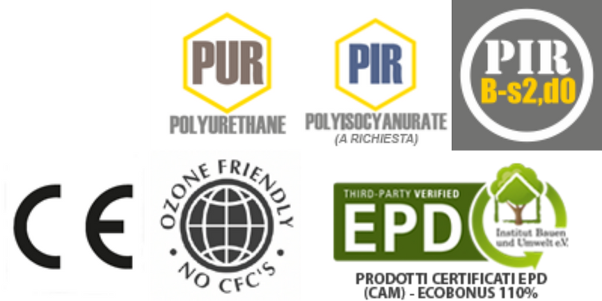 - Izolacijski material: togi poliuretanski (PUR) ali (PIR) penasti material