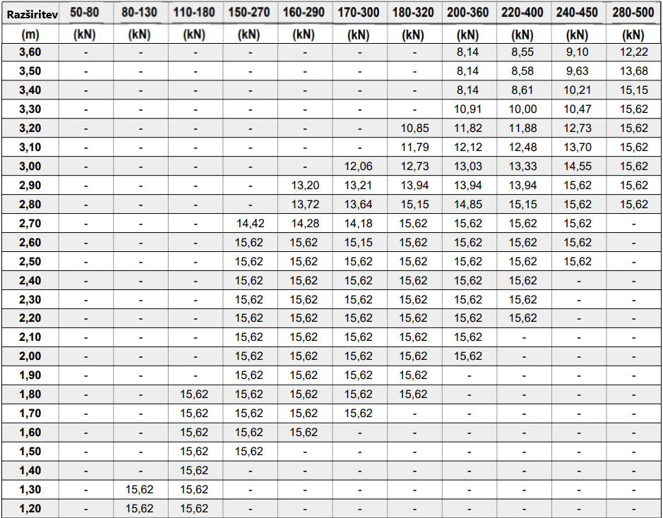 - Izvedbe: podjetje GBM proizvaja 8 različnih modelov, razvrščenih glede na največjo raztegljivost in nosilnost.